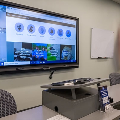 Training starts in the classroom. That's why O'Fallon's training/lecture room has all the tools you need to succeed. With tiered stadium-style seating for up to 70 attendees, there's no bad seat in the house. And, with top-of-the-line Wi-Fi enabled SmartBoards, Smart PC technology and 80" televisons, our tools ensure officers and instructors stay on the same page. Longer training sessions will appreciate thoughtful details, like computer charging ports at each seat and access to an in-room break area.